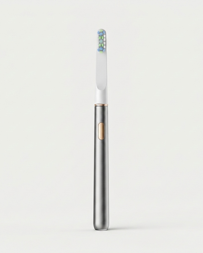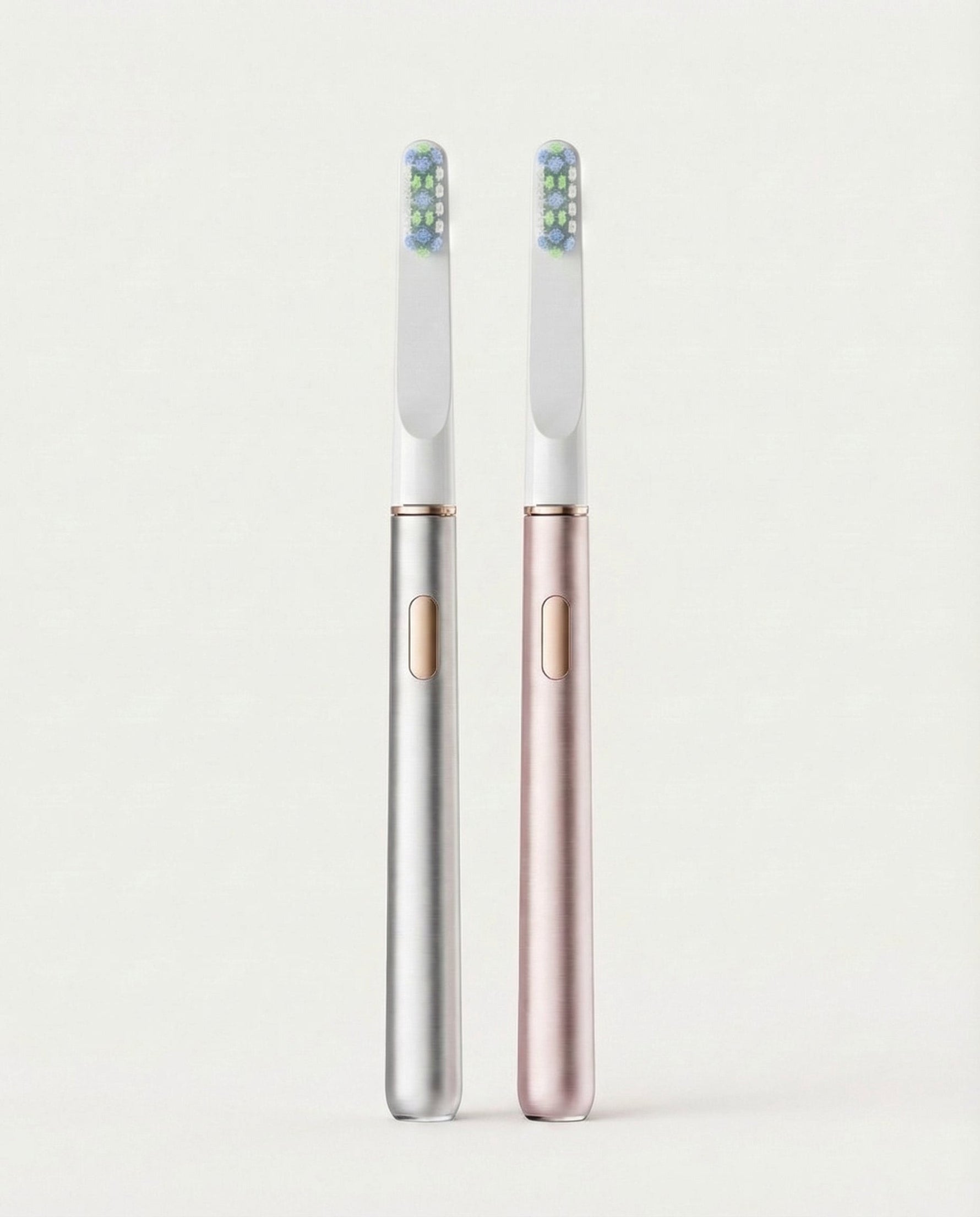 An aerospace-grade aluminum handle built to last for years. Not some flimsy plastic. A toothbrush you choose once and keep for life.